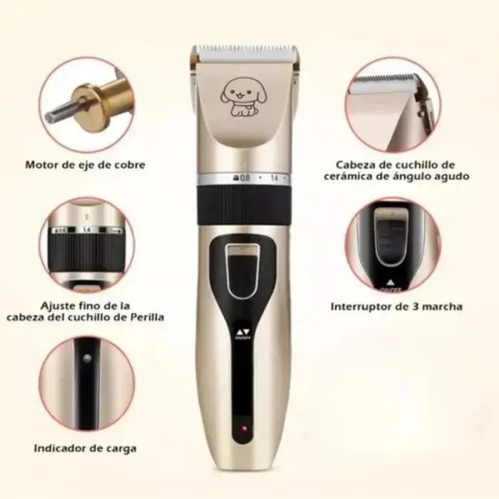 Maquina corta pelo para mascotasRecargable USBCuchillas de Acero inoxidableColor Dorado